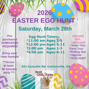 Easter Egg Hunt on the Farm- March 28th: Drive Thru Tour and egg hunts between 10am-5pm. Check the calendar on Farm Tour Page for details.