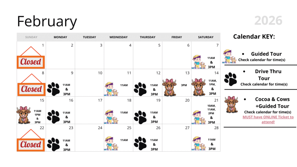 February 13th, 14th & 15th: Hot Chocolate & Cows – MUST have a prebought ticket reservation to attend!